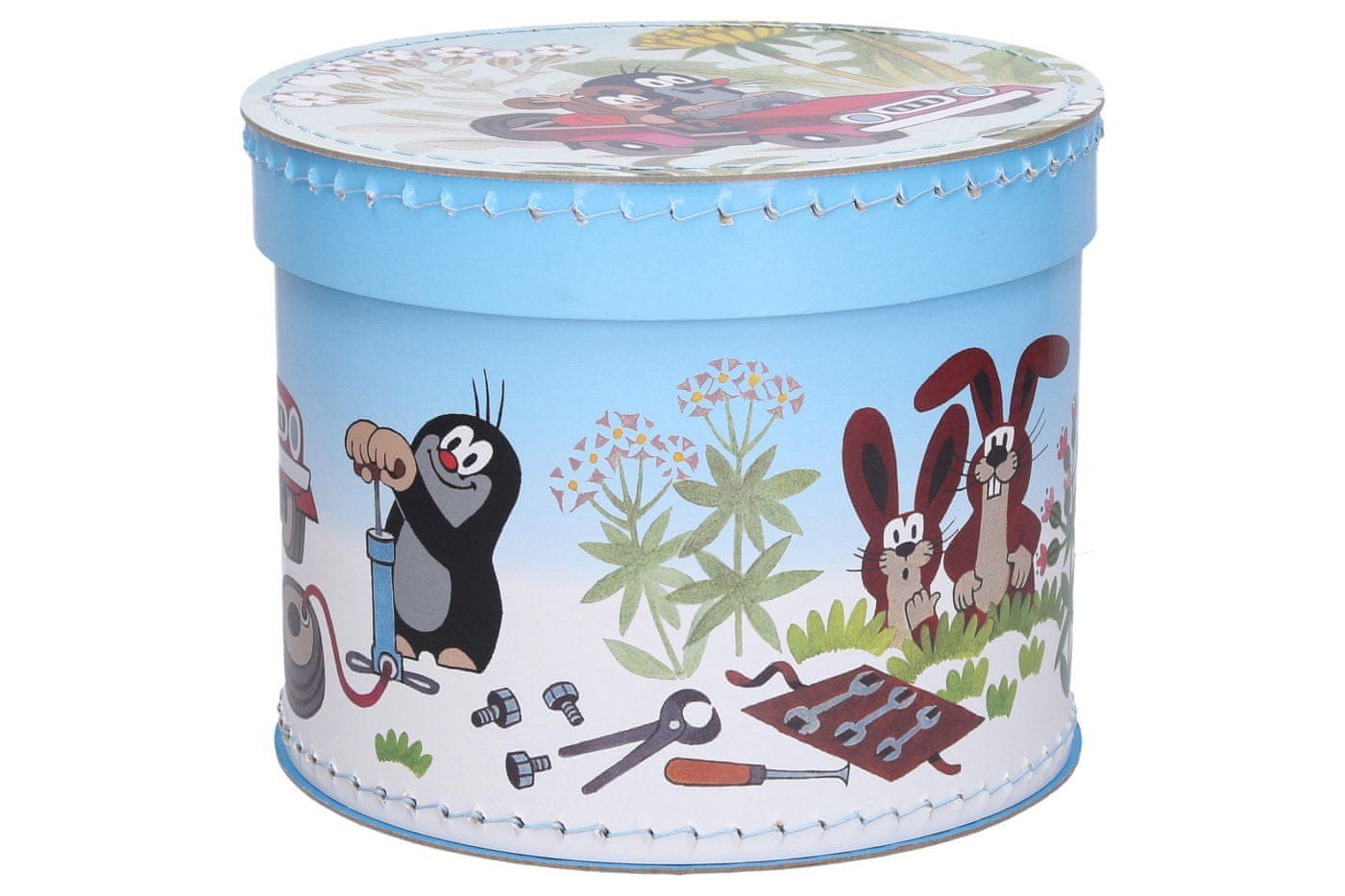 Okrogla škatla za krte. Dimenzije 20×20×15,5 cm. Celoten opis