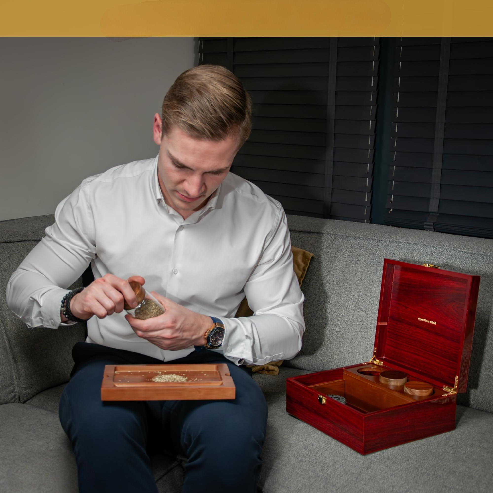 Škatla za shranjevanje Open Your Mind je elegantna in funkcionalna rešitev, zasnovana z mislijo na estetiko, vzdržljivost in udobje. Ročno izdelana iz visokokakovostnega borovega lesa, se odlikuje s trdno konstrukcijo z ojačanimi vogali, ki zagotavljajo stabilnost in dolgo življenjsko dobo. Komplet vključuje odstranljiv pladenj in tri hermetične steklene posode z akacijevimi pokrovi, ki se popolnoma prilegajo notranjosti škatle. Zahvaljujoč temu lahko vse malenkosti, dodatke ali izdelke za sprostitev shranite na enem mestu, na urejen in eleganten način.