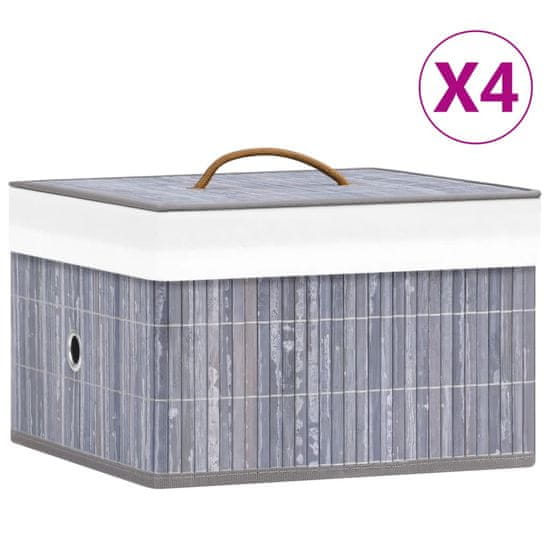 shumee Škatle za shranjevanje iz bambusa 4 kosi sive