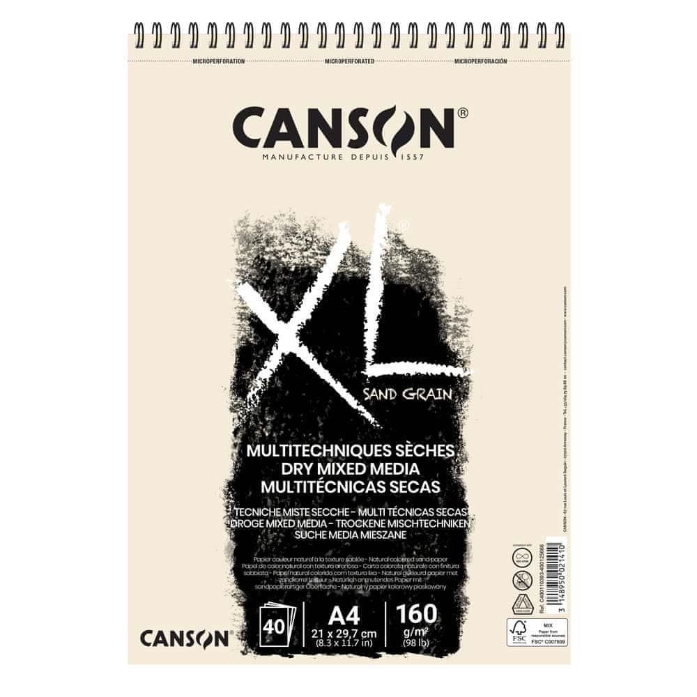 Papir Canson XL Sand Grain vsebuje organske, obnovljive materiale. Njegova površina zadrži pigmente, kar ustvarja subtilne barvne učinke. Enostavno se briše in se lahko uporablja na obeh straneh. Zasnovan je posebej za medije, kot so svinčnik, pastel ali oglje. Celoten opis
