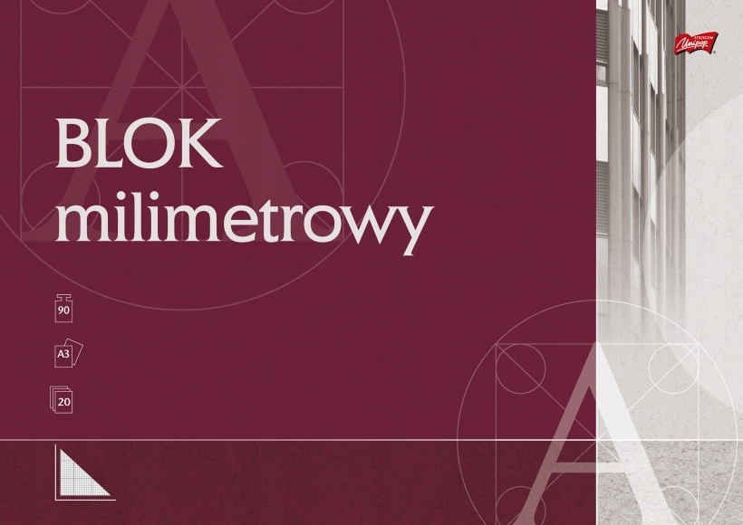 Blok vsebuje 20 listov z milimetrskim tiskom z gramaturo 90 g/m2. Premazan ovitek z gramaturo 115 g/m2 uporablja najnovejše oblikovalske motive UNIPAP . Za poudarjanje kakovosti končne obdelave je ovitek dodatno sijajen. Celota je ojačana s kartonsko podlago.