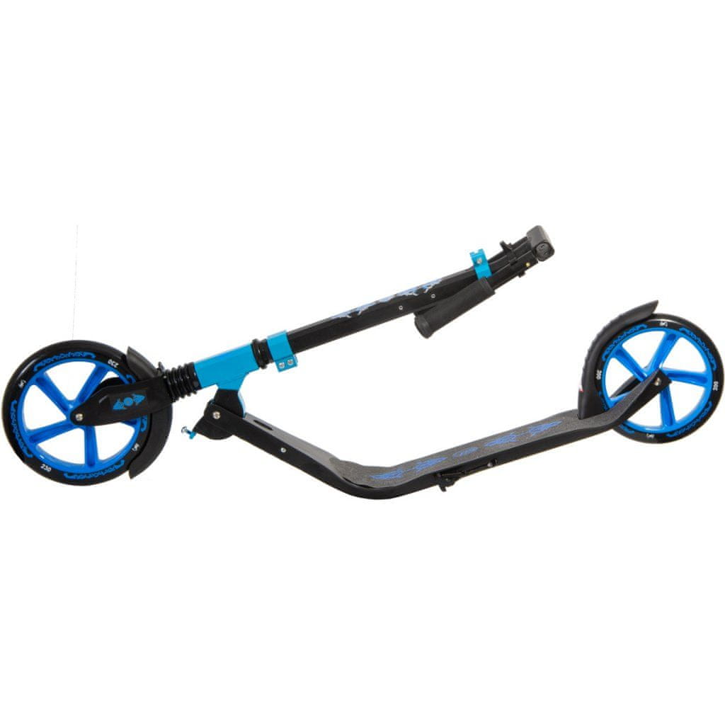 Aluminijasta konstrukcija bo omogočila dolgotrajno uporabo brez znakov korozije. Sprednji amortizer bo zagotovil visoko udobje vožnje, blažil in razpršil vibracije in udarce. Tiha in trpežna poliuretanska kolesa zagotavljajo odličen oprijem na površini. Protizdrsna plošča pomaga ohranjati ravnotežje. Možnost nastavitve višine krmila omogoča uporabniku enostavno izbiro. Priročen in hiter sistem zlaganja skiroja in ročaja omogoča enostaven transport in shranjevanje. Nedrseči gumijasti ročaji krmila zagotavljajo varnost in udobje ter blažijo morebitne padce. Zložljiva noga bo olajšala varno parkiranje med postanki. Snemljiv tekstilni ročaj bo olajšal transport in shranjevanje.