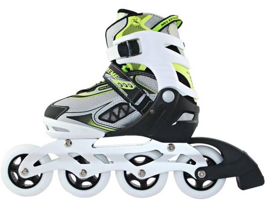Nils Extreme NA9006 so zasnovane za začetnike in srednje napredne drsalce, za rekreativno drsanje. Te drsalke ponujajo odlične vozne lastnosti zahvaljujoč visokokakovostnemu aluminijastemu okvirju in sistemu zapiranja z več oprijemom, ki ga sestavljajo ježek, zaponka in vezalke, ki varno držijo vaša stopala. Zaradi vsega tega je ta model primeren za vse razmere in zagotavlja edinstveno drsalno izkušnjo. Model je opremljen s štiristopenjskim sistemom za nastavitev velikosti. Z enostavnim sistemom za nastavitev lahko hitro in enostavno prilagodite velikost čevlja svojemu stopalu.