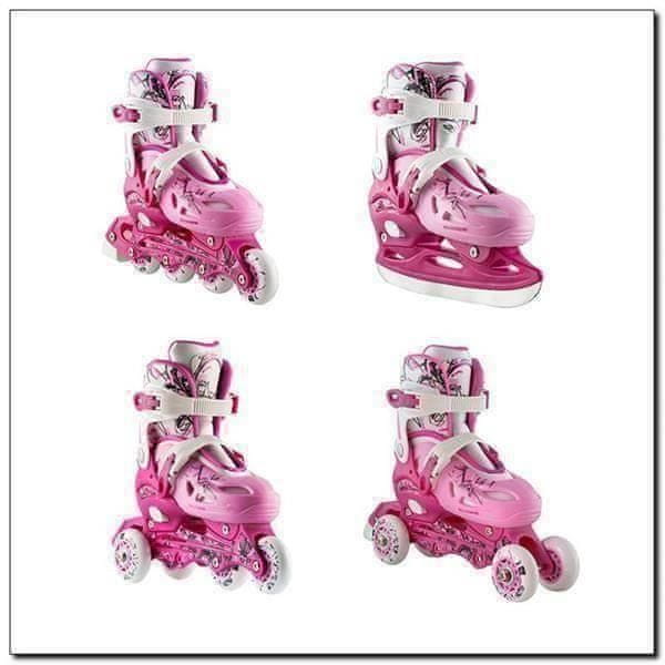 Rolerji NH0320A Nils Extreme so zasnovani za najmlajše navdušence nad rolanjem. Ponujajo štiri možnosti konfiguracije: rolerji, drsalke za led, rolerji in inline rolerji. Združujejo privlačen, barvit dizajn z visokokakovostno izdelavo. Z namestitvijo dodatnega kolesa na zadnjo os se rolerji funkcionalno preoblikujejo v rolerje. Ta rešitev bo najmlajšim drsalcem pomagala narediti prve korake v tem športu. Z namestitvijo dodatnega kolesa na sprednjo os se rolerji spremenijo v rolerje. In to še ni vse! NH0320A imajo tudi odstranljivo rezilo, kar omogoča uporabo pozimi. Material EVA, 145 g mrežica, 3 mm pena in zračna membrana zagotavljajo udobje med drsanjem. Lahek in trpežen čevelj skupaj s sistemom trakov zagotavlja maksimalno varnost. Preprost sistem nastavitve omogoča hitro in enostavno prilagoditev velikosti vašemu stopalu. Rolerji so opremljeni z okvirjem iz sintetičnega materiala, imenovanega polipropilen, in ležaji 608Z. Model je na voljo v treh privlačnih barvah. Specifikacije: Okvir: PP Ležaji: 608 Z Rezilo rolerja iz nerjavečega jekla Čevelj: trd s prezračevalnim sistemom Kolesa: PVC 64 mm/72 mm Vložek: profilirana polprepustna membrana 3 mm pena visokokakovosten material Lycra VELVET EVA Dolžina notranjega škornja (mm): 210–230 Zapenjanje: dvodelna zaponka z vezalkami Rolerji so opremljeni z zavoro Barva: roza Velikost: S (31–34) Opombe: Ni namenjeno za komercialno uporabo Ustreza standardu PN-EN 13843:2009 24-mesečna garancija