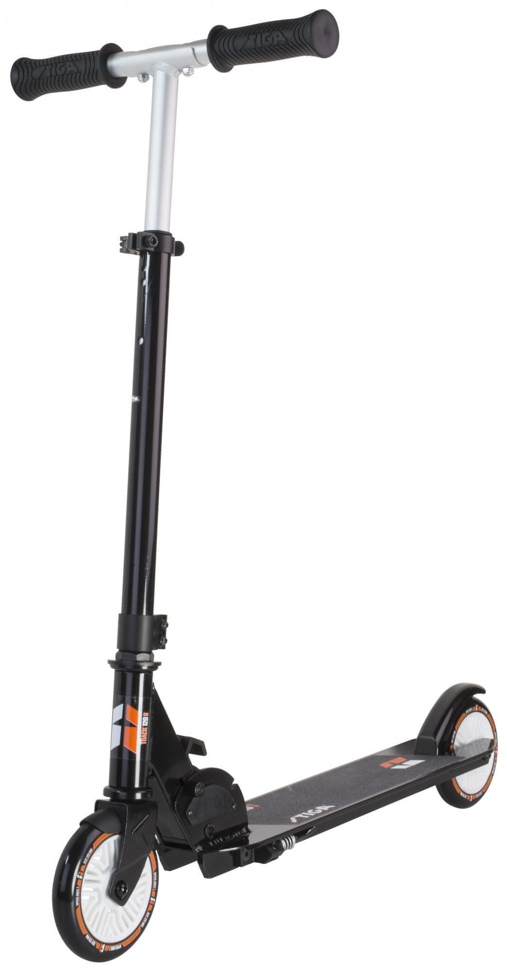Skiro s stabilno konstrukcijo iz jekla in aluminija, 200mm kolesi, nizko desko in nožno zavoro.