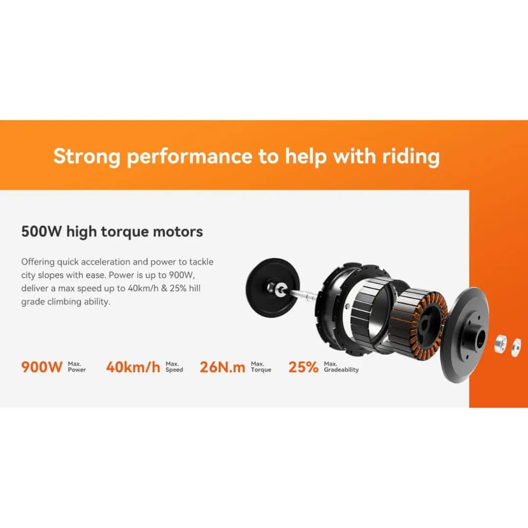 Sprostite moč motorja KingSong N14! Z robustno 500 W nazivno močjo in impresivno 900 W vršno močjo ta električni skiro brez težav osvaja mestne ulice. Premagajte do 27 % naklonov z njegovim mogočnim 26 N.m navora. Preklapljajte med 4 načini vožnje, vključno s Športnim in Ekonomičnim, za popolno prilagodljivost. Izkusite natančnost in nadzor z njegovim zmogljivim pogonskim sklopom in opcijskim tempomatom – zasnovan za vsako pustolovščino!