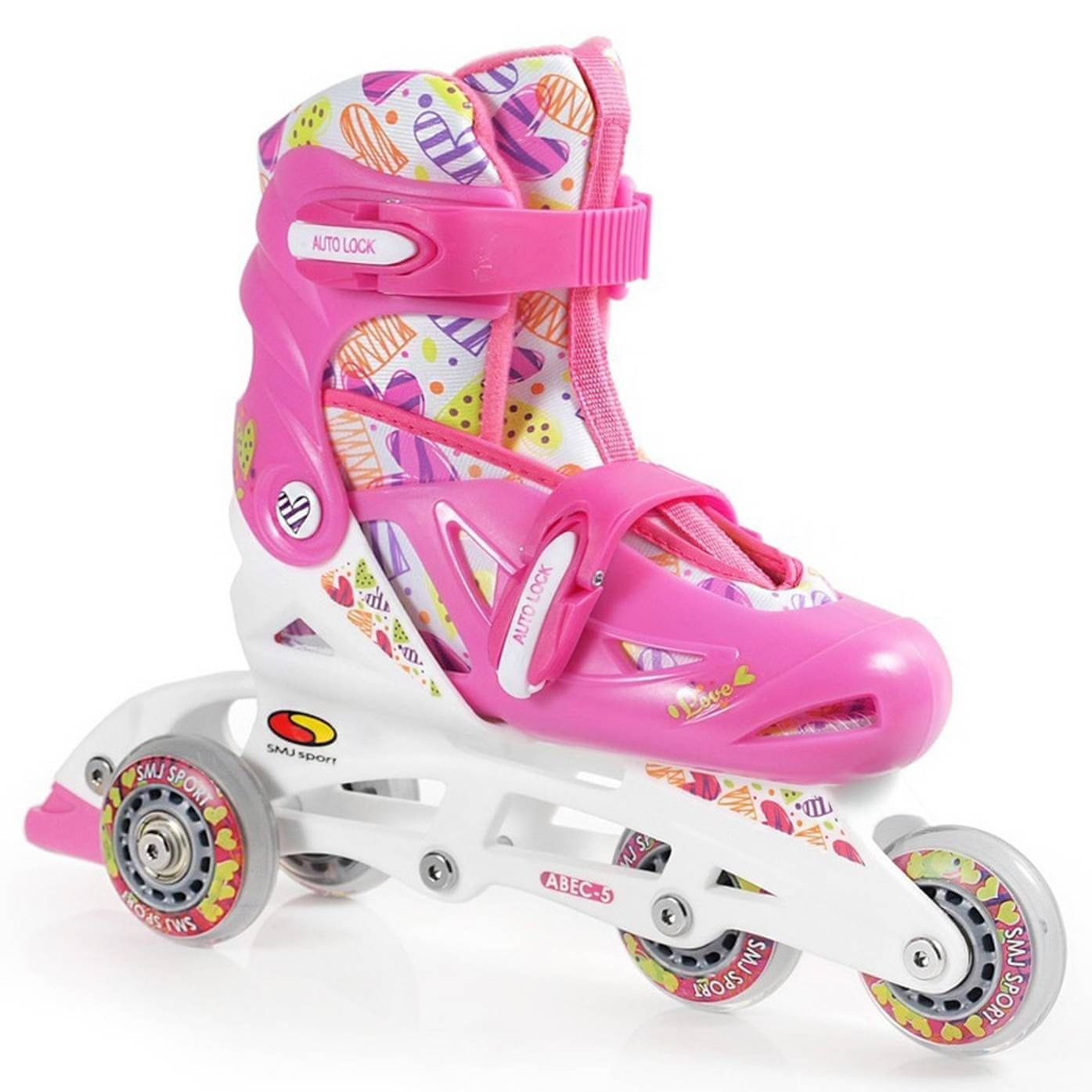 Ti rolerji imajo gumijasta kolesa, zaradi česar je vožnja veliko bolj stabilna, udobna in varnejša kot pri plastičnih kolesih. Gumijasta kolesa ne pokajo, ne oddajajo hrupa in ne drsijo. Poleg tega so ti rolerji opremljeni z zelo dobrimi in vzdržljivimi ležaji ABEC 5 karbonskimi. Čevelj in okvir sta v celoti izdelana iz visokokakovostne ABS plastike . Sistem za nastavitev čevlja omogoča hitro menjavo velikosti v štirih velikostih – to je zelo praktično, saj drsalke rastejo z otrokovim stopalom. Nastavitev velikosti je zavarovana z zaklepom. Ko se vaš otrok dobro nauči drsati, lahko kolesa prilagodite in drsalke spremenite v rolerje. Če želite drsalke spremeniti v rolerje, preprosto nastavite kolesa s priloženim ključem in sledite navodilom.