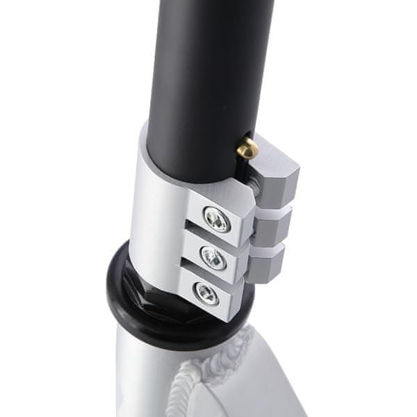 HS120 Nils Extreme je skiro za otroke, najstnike in odrasle. Maksimalna teža uporabnika je 100 kg. Volan je izdelan iz trpežnega jekla, plošča pa iz aluminijeve zlitine. HS120 se odlično obnese na asfaltnih površinah, skate parkih in pločnikih. Kolesa 100 × 24 mm in ležaji ABEC9 omogočajo dolge vožnje z malo truda. Zadnja nožna zavora, tipa flex fender, zagotavlja varno uporabo in vam omogoča enostavno zaustavitev skuterja. Kupci, ki izberejo ta model, so pozorni na njegovo vzdržljivost in enostavnost uporabe. Zahvaljujoč uporabi visokokakovostnih materialov bo skuter Nils Extreme zdržal leta. HS120 je kaskaderski skuter. Skuterji za kaskaderje in freeride so brez mehanizma za zlaganje in nastavitve višine krmila – namesto tega imajo ojačane plošče, krmila in trdne varjene linije, ki povezujejo ključne elemente – to poveča togost strukture. Najpomembnejši lastnosti trik skiroja sta majhna teža – zaradi katere je lažje izvajati trike in vzdržljivost – ki poveča varnost pri dinamičnih skokih in zmanjša možnost okvar. HS120 ima širok trikomorni krov, ki je tog in odporen na udarce. Zasnova bo omogočala zadovoljivo izvedbo kaskaderjev, tako za začetnike kot za napredne kaskaderje Specifikacija: Material: aluminij, jeklo Mere: dolžina: 67 cm širina: 52 cm višina: 92,5 cm višina krmila ni nastavljiva Možnost zlaganja: ne Zavora: da, zadnji nožni tip flex fender Mere platforme: dolžina: 35 cm širina: 11 cm Vrsta materiala na platforma: aluminij Krmilo: jeklo Vilice: aluminij Kolesa: PU 100 × 24 mm, plastično jedro Ležaji: ABEC9 Maksimalna obremenitev: 100 kg Teža izdelka: 3,9 kg Namen uporabe: rekreacija, freestyle, kaskaderstvo Opombe: Ni namenjeno komercialni uporabi Skladno s standardom PN-EN 14619:2015 24-mesečna garancija Uvoznik: Abisal Sp. z o. o. | Poljska | 41–807 Zabrze | st. Pyskowicka 17 | e-pošta: abisal@abisal.pl Abisal Sp. z o. o. izjavlja, da so izdelki, ki jih prodaja podjetje, varni in izpolnjujejo zahteve Zakona o splošni varnosti proizvodov z dne 12. decembra 2003. (Uradni list z dne 31. decembra 2003)