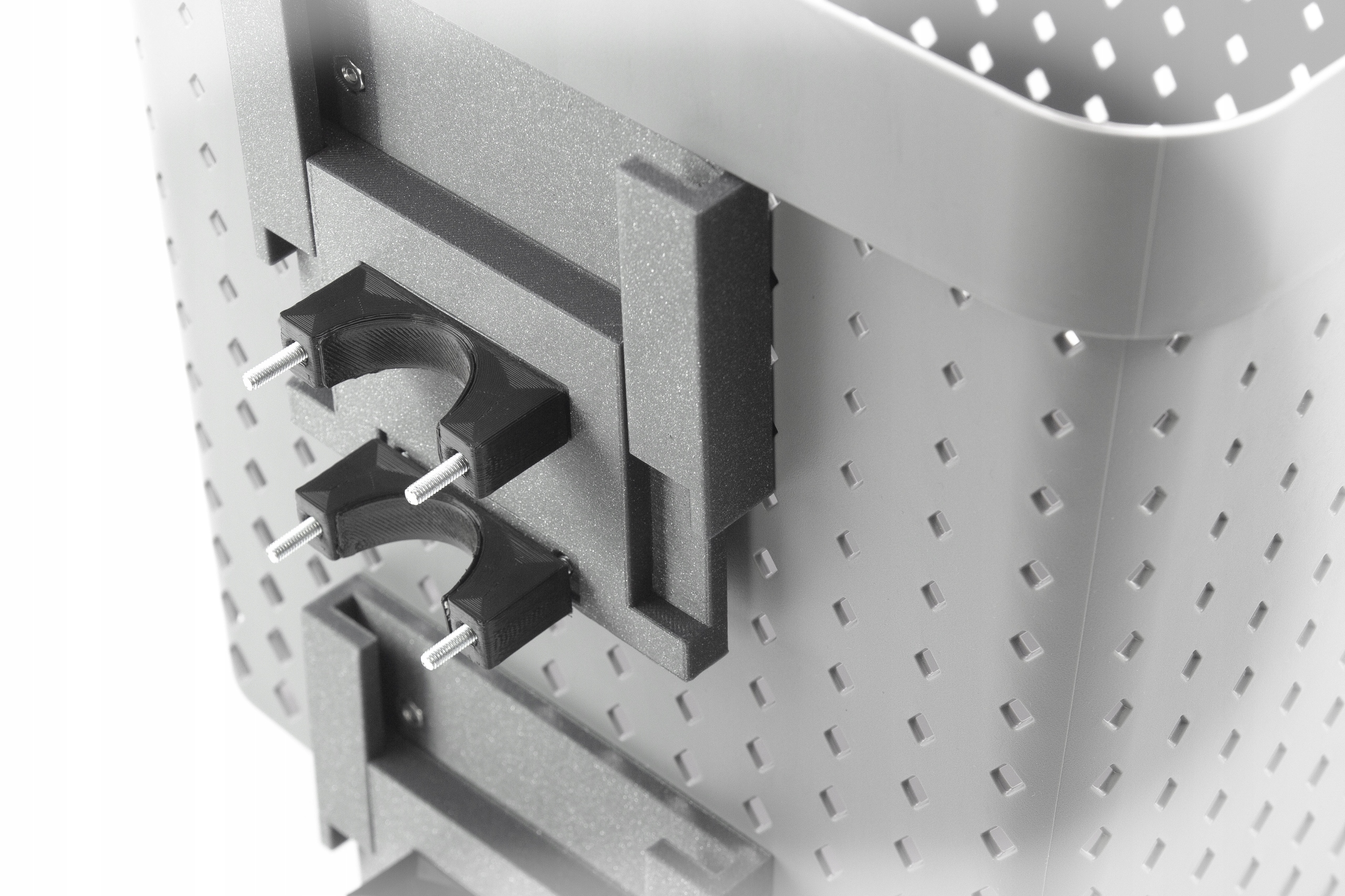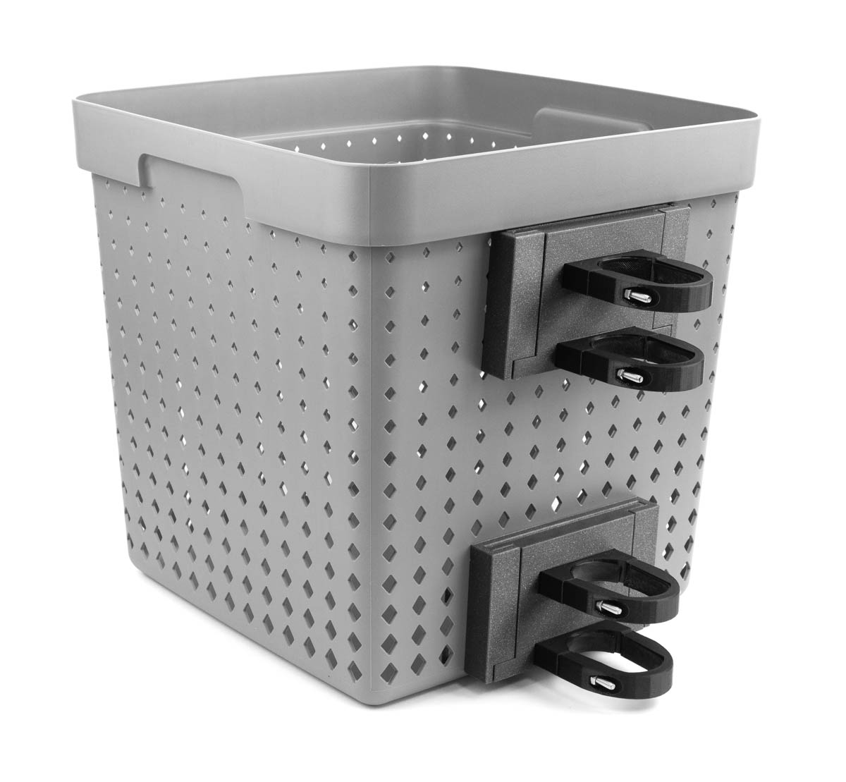 vam omogoča, da košaro pritrdite ali snamete v 4 sekundah . Zahvaljujoč univerzalnemu sistemu lahko veliko košaro zamenjate z eno ali celo dvema manjšima košarama, ki sta na voljo v naši ponudbi.