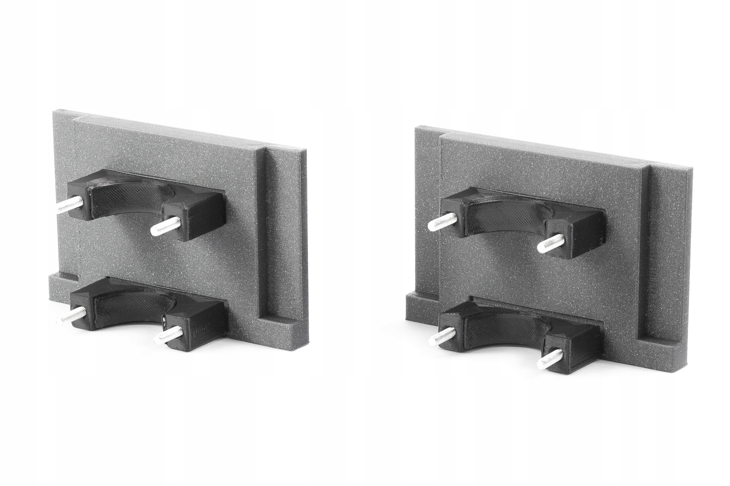 gumijaste blazinice , vstavljene v luknje, kjer so vijaki – ki delujejo kot elastični odbijači in pokrovi Zahvaljujoč tem gumijastim blazinicam