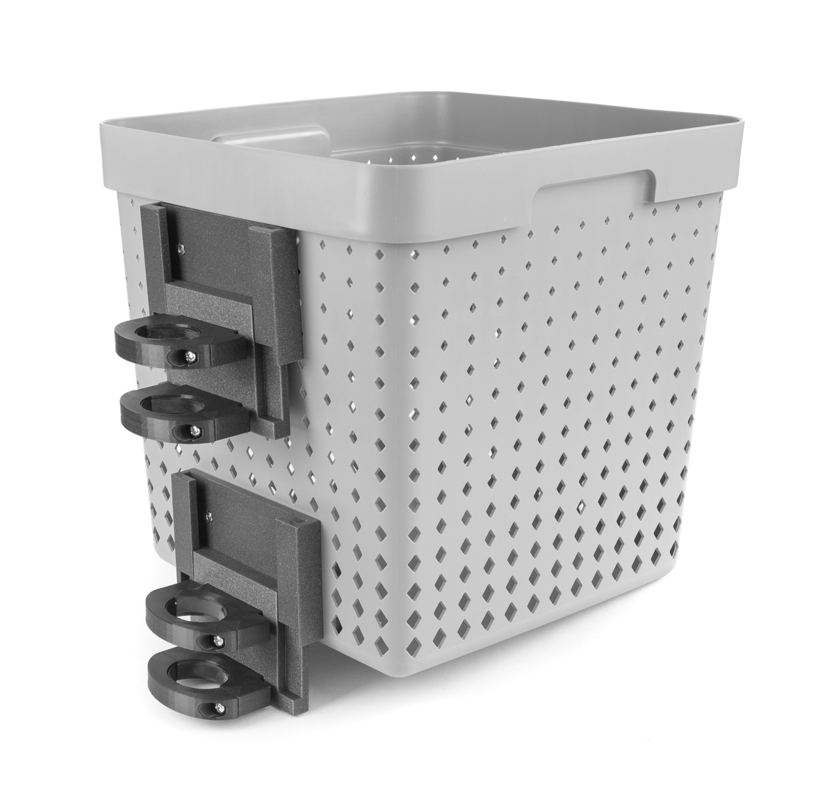 vam omogoča, da košaro pritrdite ali snamete v 4 sekundah . Zahvaljujoč univerzalnemu sistemu lahko veliko košaro zamenjate z eno ali celo dvema manjšima košarama, ki sta na voljo v naši ponudbi.