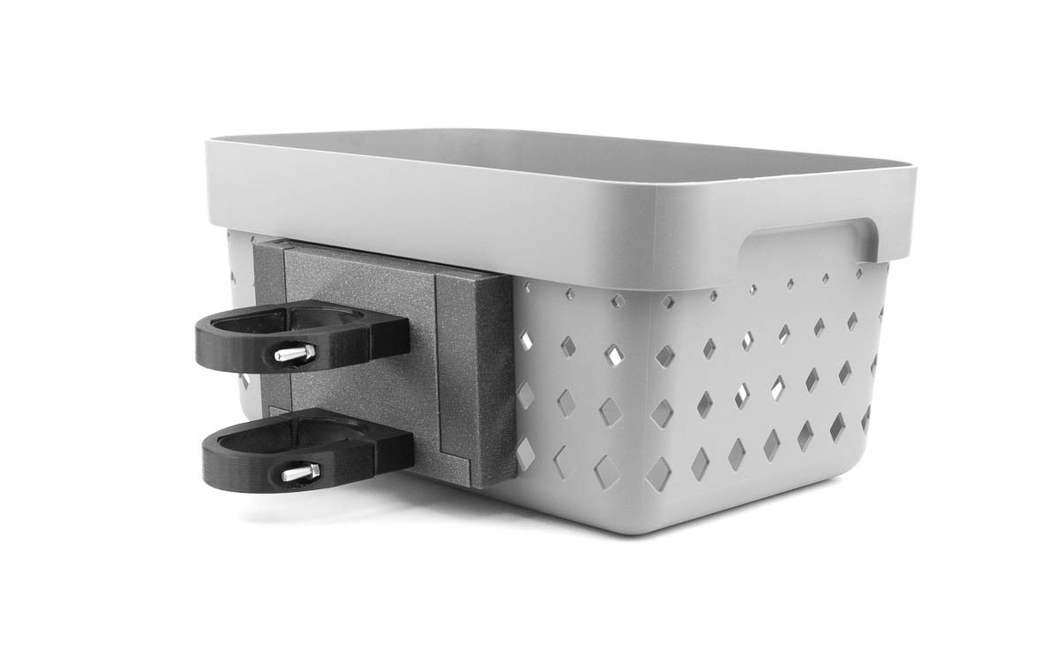 2 sekundah . En del ročaja morate trajno priviti le enkrat, košaro pa lahko pritrdite kadar koli želite. Zdaj lahko priročno prevažate manjše predmete ali torbico, morda pa želite iti na tržnico, kupiti zelenjavo, sadje in vse to vreči naravnost v košaro. Obstaja lahko veliko razlogov … za prevoz knjige, prigrizka ali pijače. Košaro lahko vedno vzamete s seboj; ni vam treba nenehno nalagati in razkladati predmetov.