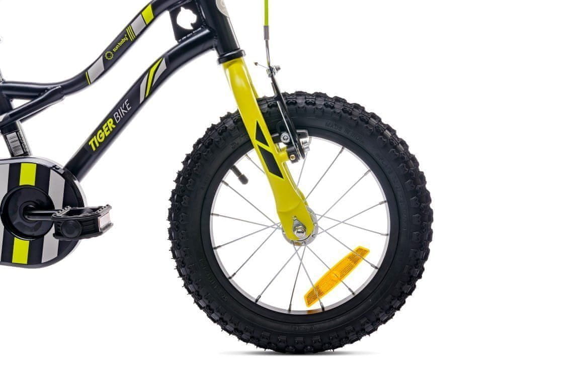 shumee Otroško kolo 14 palcev za fantka, krmilo, stranska kolesa, zvonec, Tiger Bike, črno, rumeno, Sun Baby