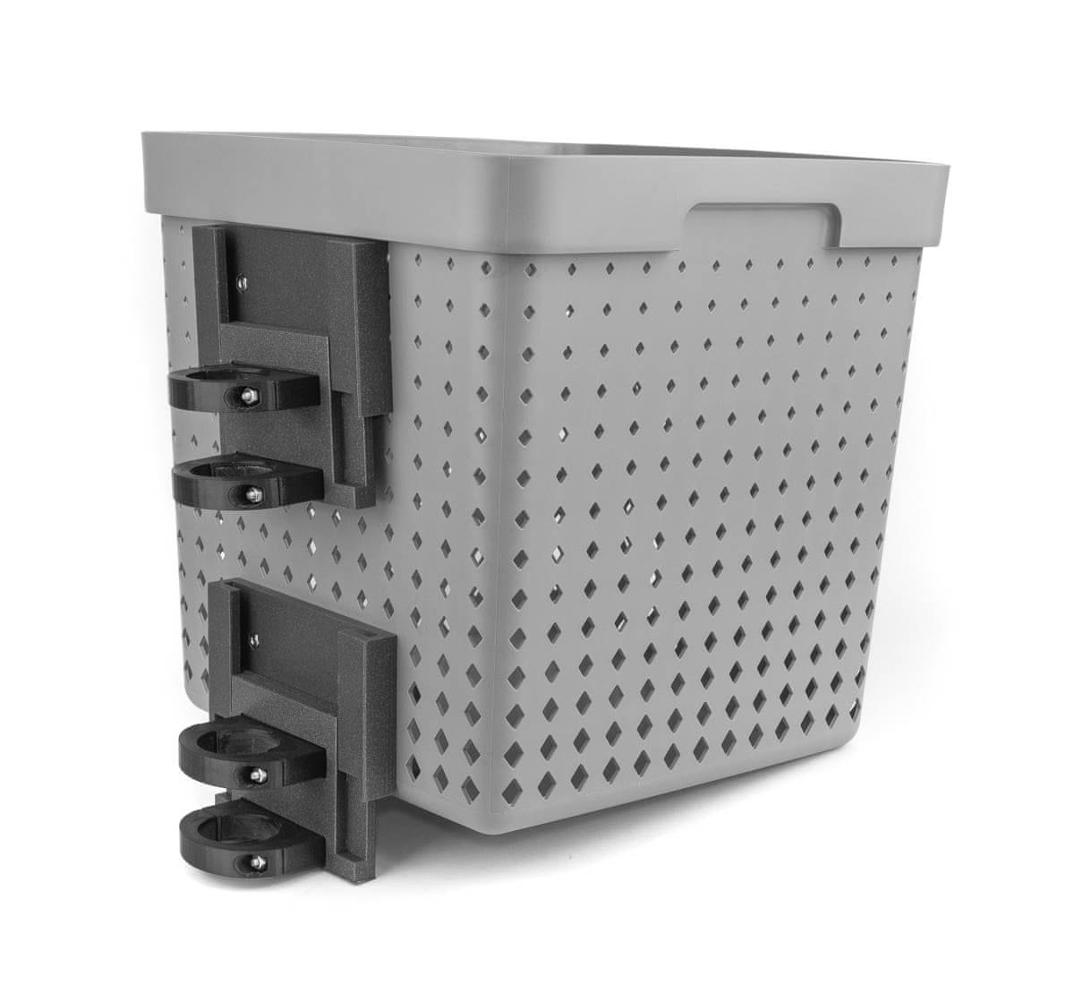 vam omogoča, da košaro pritrdite ali snamete v 4 sekundah . Zahvaljujoč univerzalnemu sistemu lahko veliko košaro zamenjate z eno ali celo dvema manjšima košarama, ki sta na voljo v naši ponudbi.