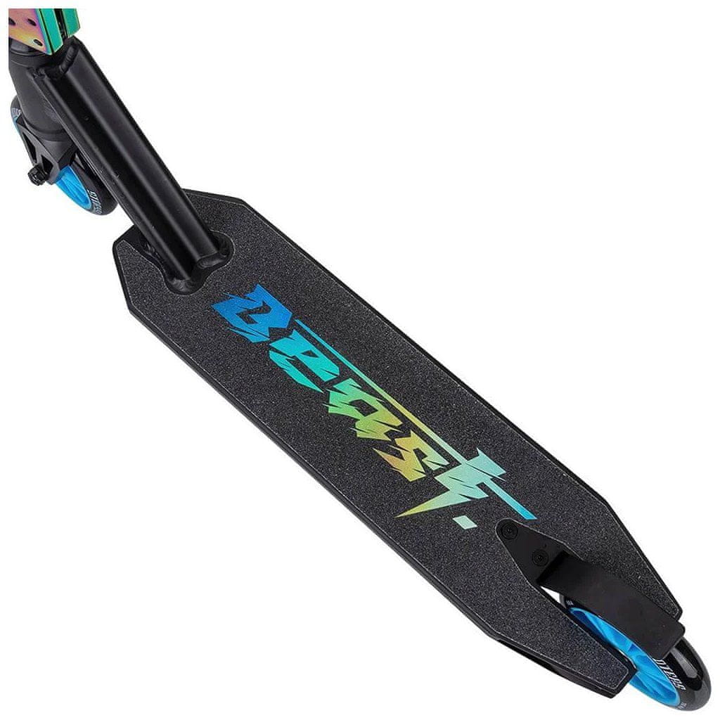 Najlonska zasnova koles in njihov ozek 110 mm profil s trdoto 88 A ter krogličnimi ležaji ABEC-9 jih naredijo super lahke in dobro odporne na trenje. To pomeni, da boste lahko učinkoviteje pridobivali hitrost in se dirkali po skateparku kot prava zver na kolesih! Krmilo se vrti za 360°.