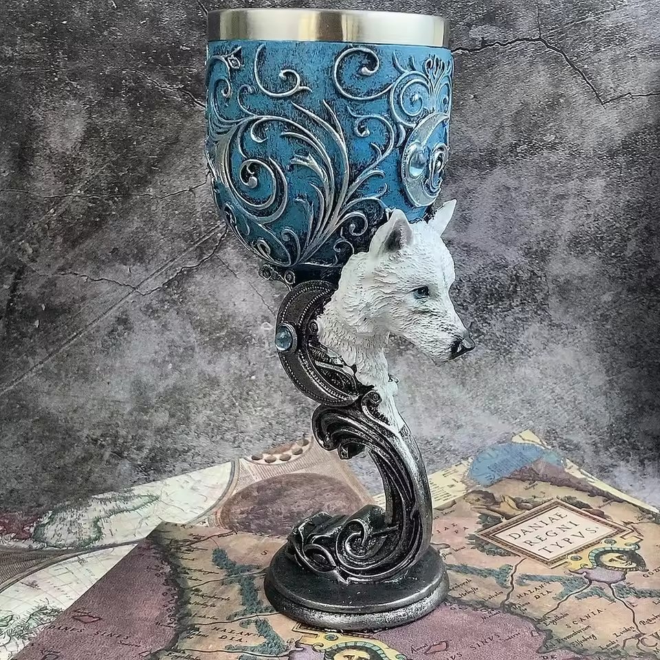 Epski kelih iz smole, z vložkom iz nerjavečega jekla in čudovitimi okraski.