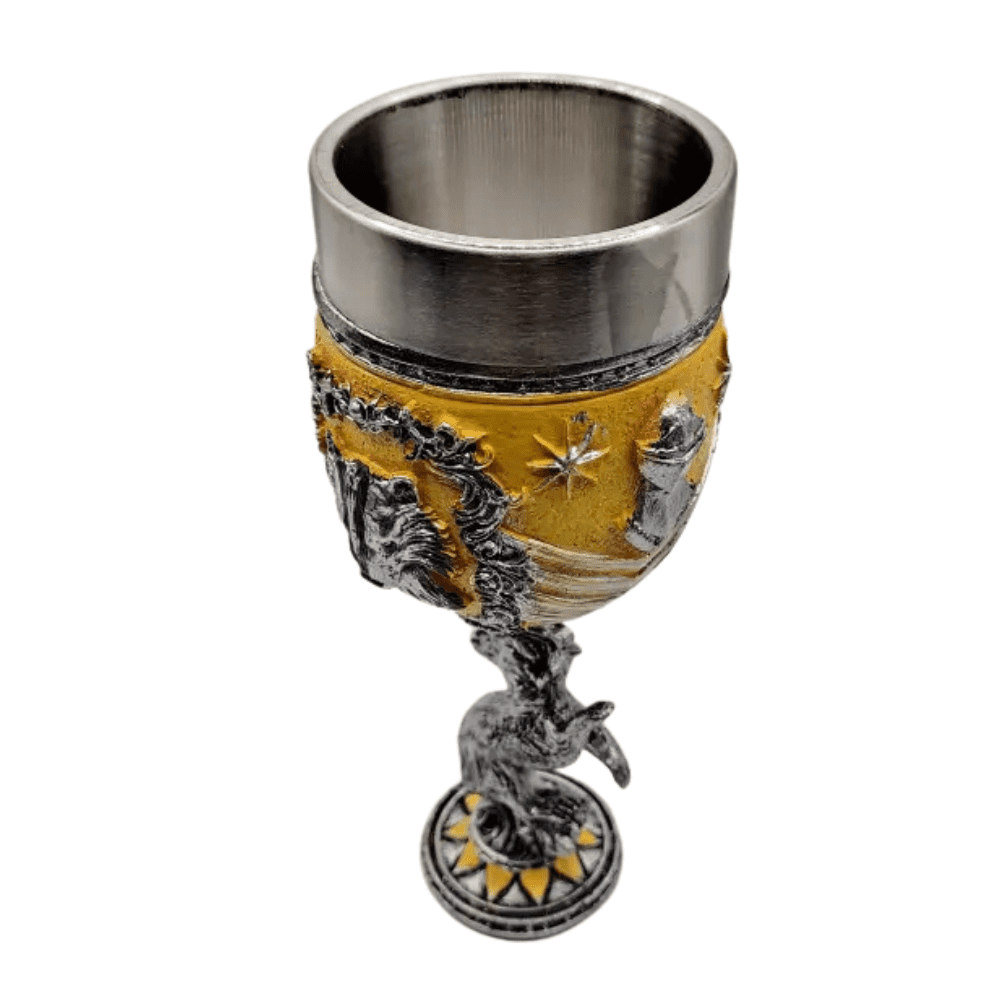 Epski kelih iz smole, z vložkom iz nerjavečega jekla in čudovitimi okraski.