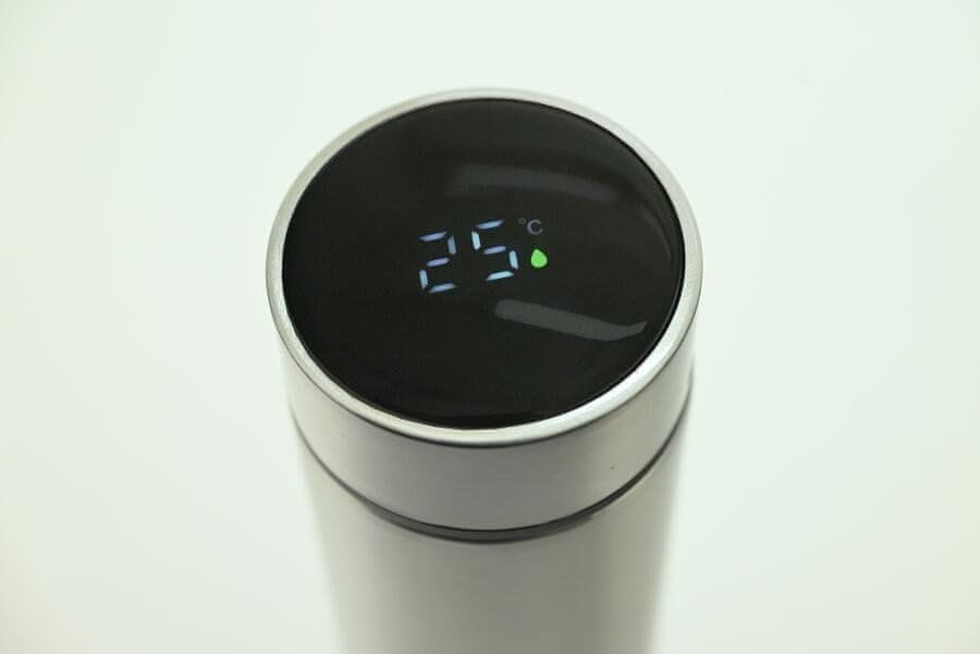 Termos, prostornina 475 ml, digitalni termometer v pokrovu, nerjaveče jeklo SUS304, vakuumska izolacija, cedilo za čaj. Celoten opis