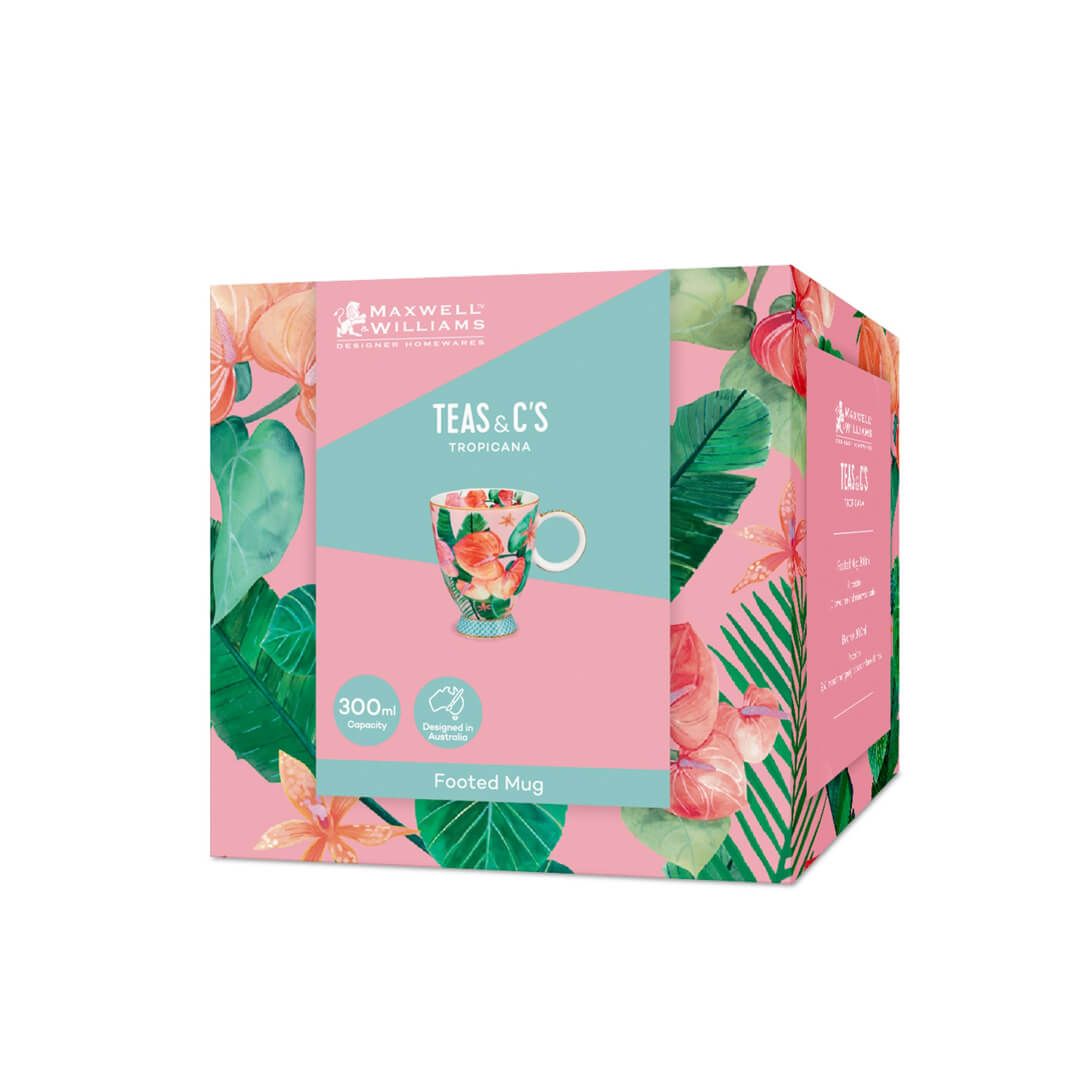Odkrijte eksotično lepoto lončka iz linije Tropicana. Njegova posebnost je dovršena noga oz. podstavek, ki lončku daje prefinjen videz. Okrašen je z bogatim tropskim listjem in čudovitimi ingverjevimi lilijami v živahnih odtenkih roza, modre in zelene barve, ki vas bodo vsak dan popeljali v osrčje tropskega raja. Izdelan je iz kakovostnega porcelana s prostornino 300 ml, zato je popoln za vašo najljubšo kavo, čaj ali kakav. Primeren je za uporabo v mikrovalovni pečici in enostaven za čiščenje, saj ga lahko pomijete v pomivalnem stroju. Dodajte svoji jutranji rutini pridih tropske svežine. NAMIG: Lonček dopolnite z ostalimi izdelki iz iste linije Tropicana.
