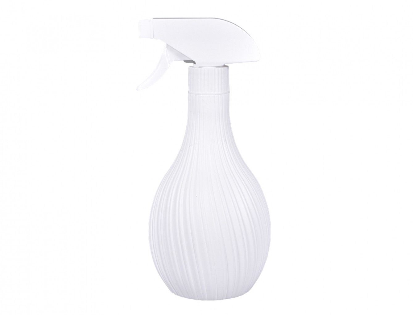 Plastični razpršilnik z okrasom vrtečih se črt po obodu. Barva: bela. Prostornina: 600 ml. Premer: 9,7 cm, višina: 21,5 cm.