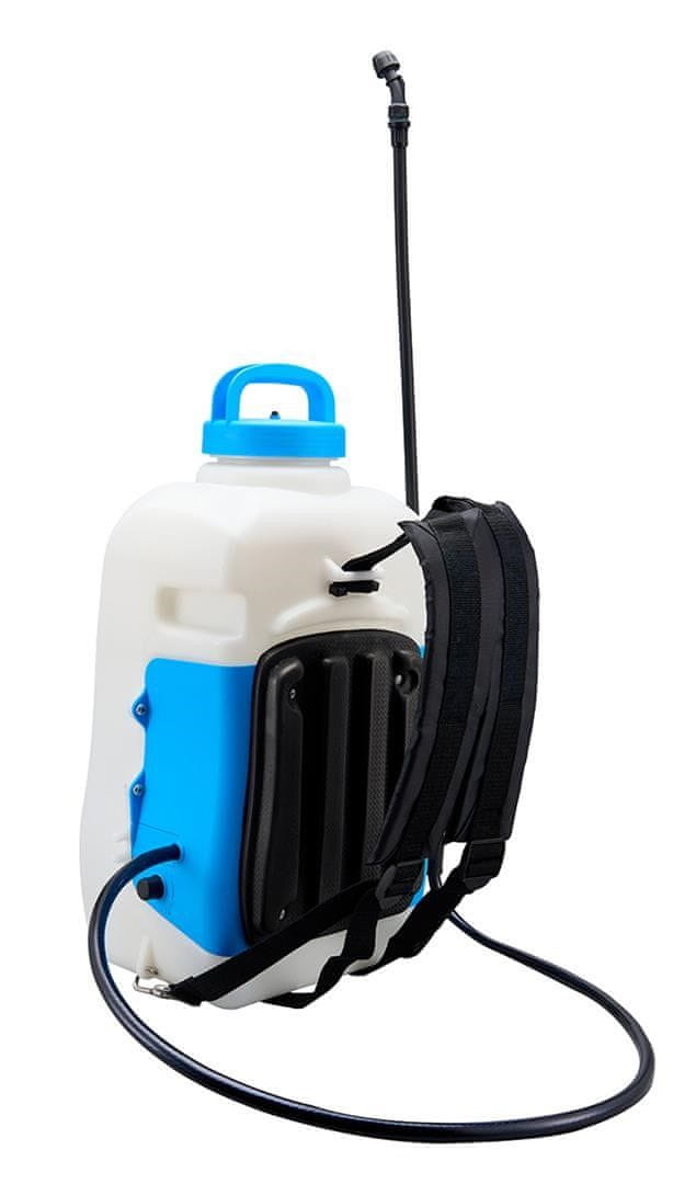 RAMDA nahrbtna škropilnica Li-Ion je opremljena z rezervoarjem 15L in omogoča delovanje do 120 minut z dvema baterijama 1,5 Ah. Maksimalni pritisk črpalke doseže 6 bar, delavni pritisk pa 2,5–5,5 bar, kar zagotavlja enakomerno škropljenje. Škropilna palica dolžine 50 cm in priložene 4 različne šobe omogočajo prilagodljivo uporabo za različne vrste rastlin in površin.