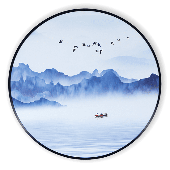 Okrogla slika v kovinskem okvirju vnese v vaš prostor del Azije preteklih stoletij. Tematsko slika izhaja iz starih akvarelov in črnilnih kitajskih slik na riževem papirju. Tako kot bonsaji tudi slike ohranjajo globoko povezavo z naravo in živalmi, ki so obdajale in navduševale stare mojstre. Visoka gorovja, prostrana jezera, cvetoča drevesa, megleni tančice – detajli iz vsakdanjega življenja ujete v svojem trenutku s privlačnim čarom. Danes se ti motivi prenašajo s tiskom na platno in lahko tako dopolnijo tudi vaš interier.