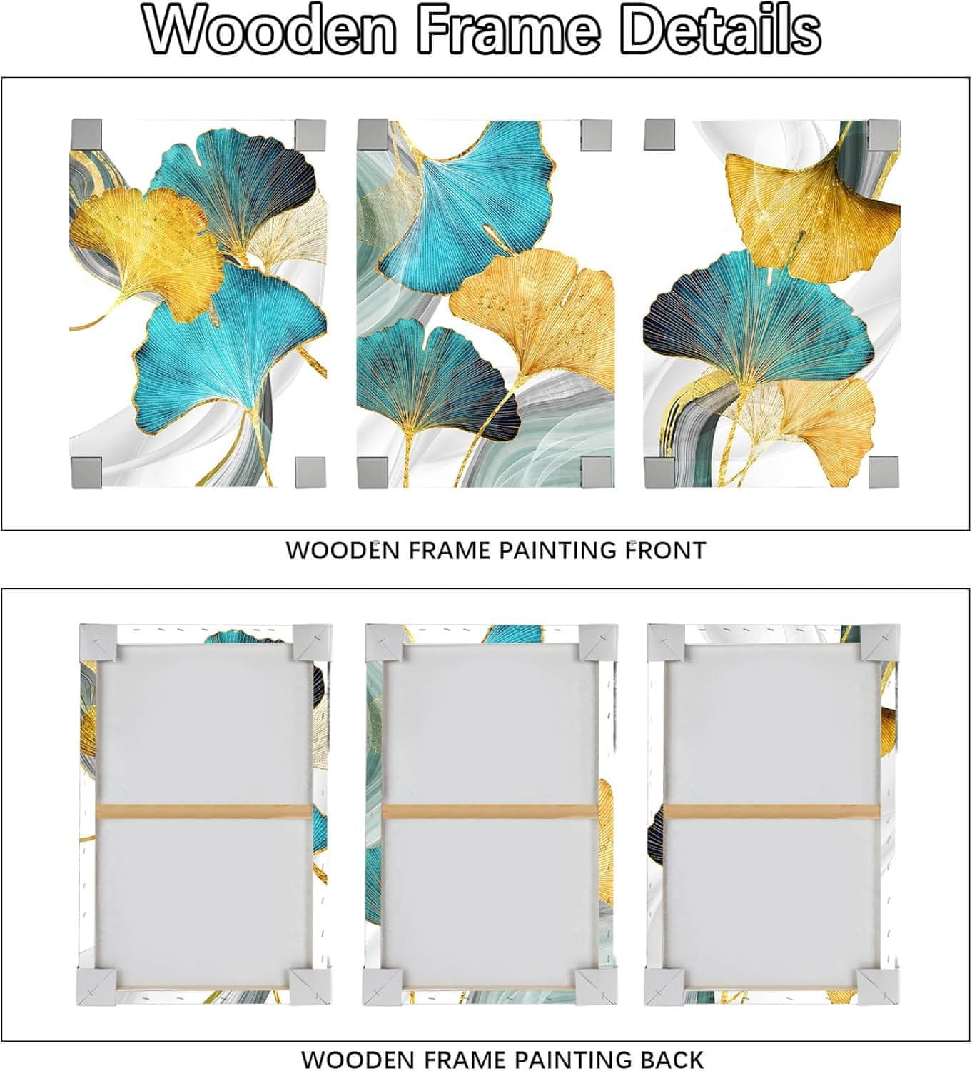 Nikcorp Stenska slika Zlati listi ginka 150x70 cm, 3-delna na platnu, dekoracija za dnevno sobo, spalnico