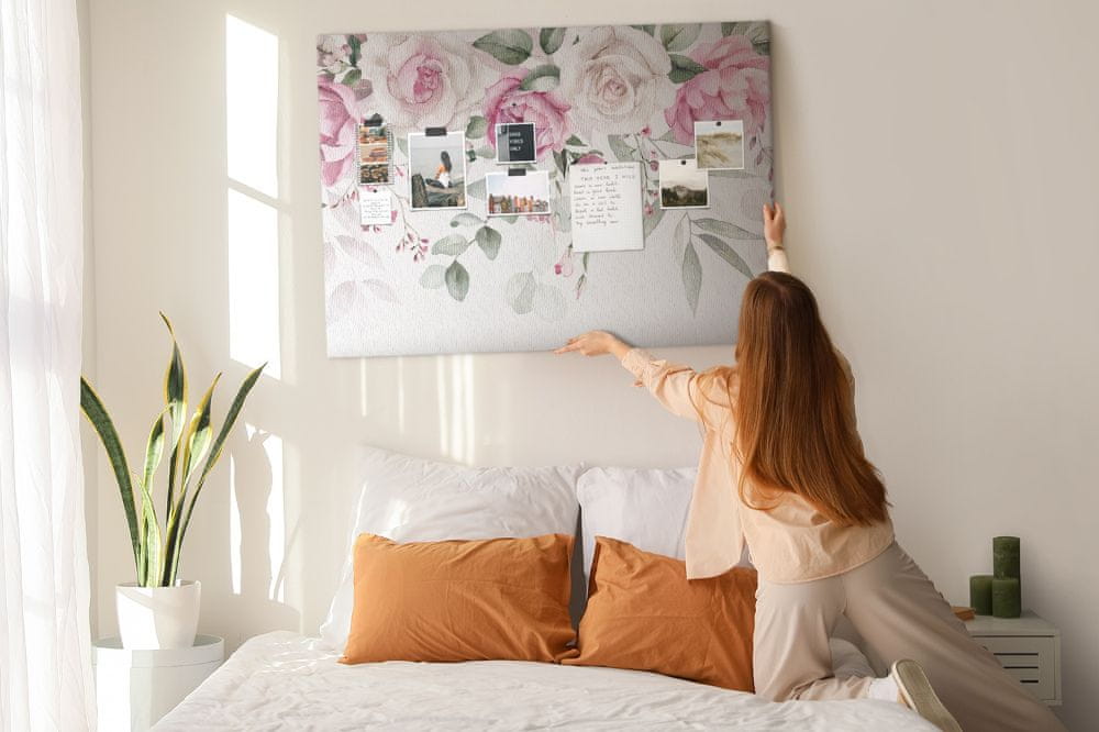 tulup.si Plošča iz plute Akvarelne vrtnice 140x100 cm Kovinski zatiči