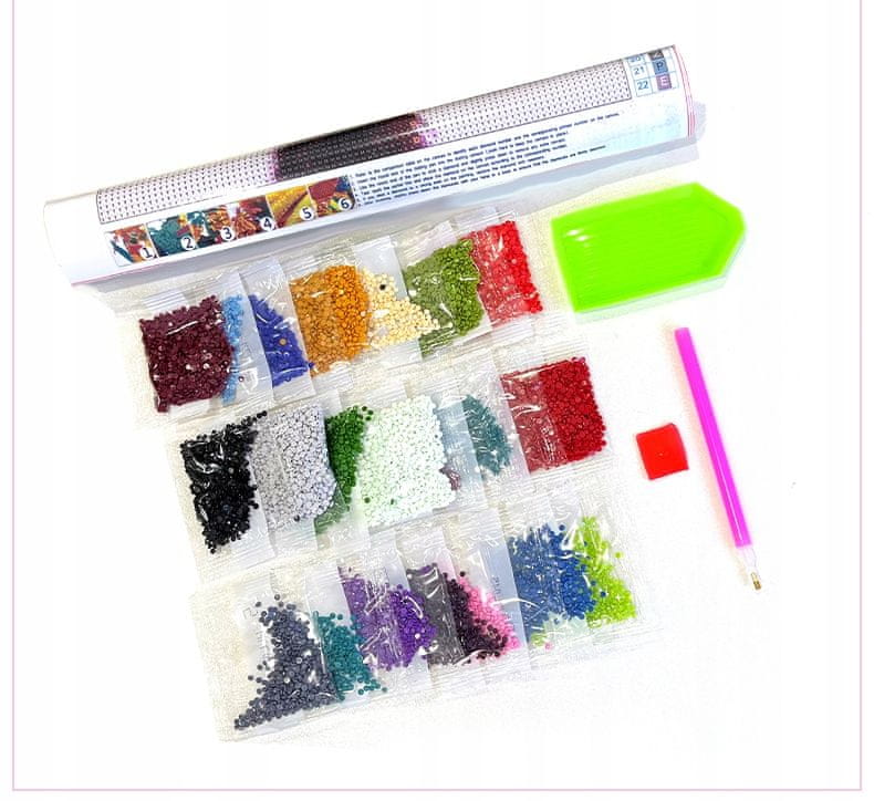 Popoln komplet za dolge ure zabave in sprostitve z aranžiranjem našega mozaika Zabava je v razporejanju majhnih kristalov na plošči, ki, ko so razporejeni, ustvarijo čudovito sliko. Vsaka vrečka je označena s številko, vsak kristal pa s črko – vsak bo sliko zlahka razporedil sam brez večjih težav.