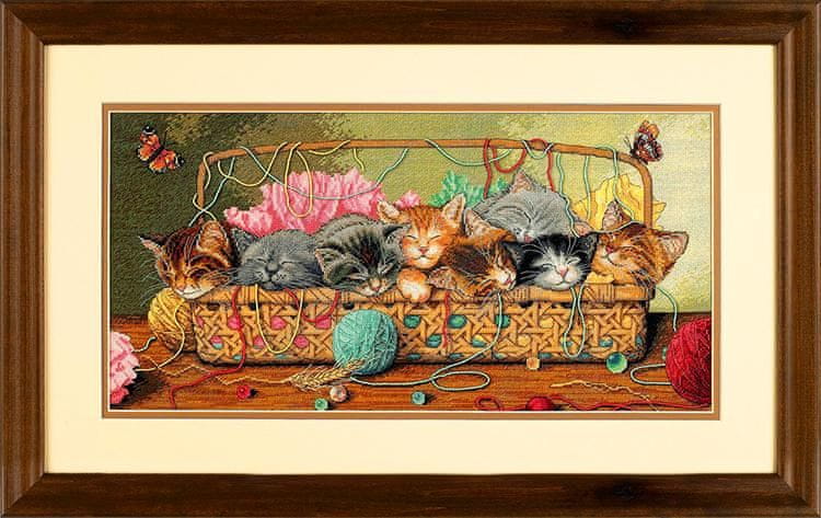 Če uživate v vezenju na čistem in neurejenem prostoru, potem je komplet za vezenje – Muce v košarici kot nalašč za vas.