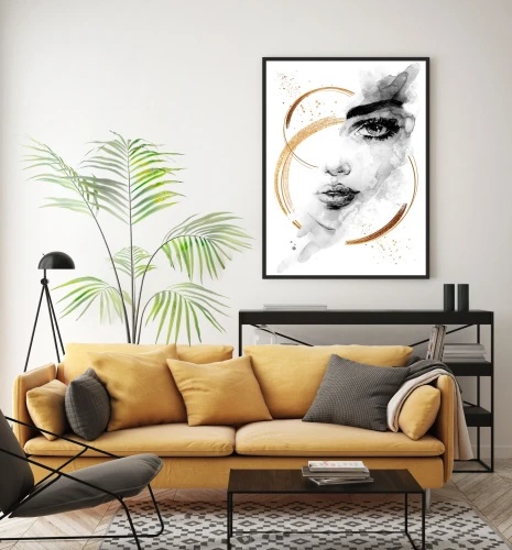 Moderni poster Wall Art Woman Črn okvir za dnevno sobo ali spalnico