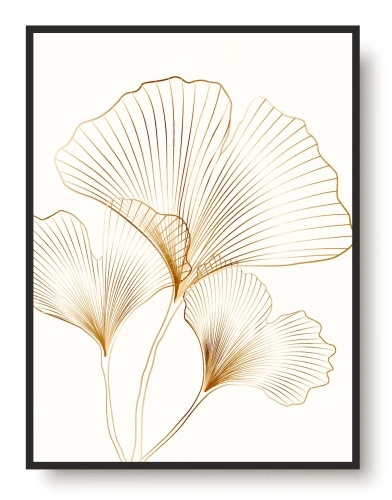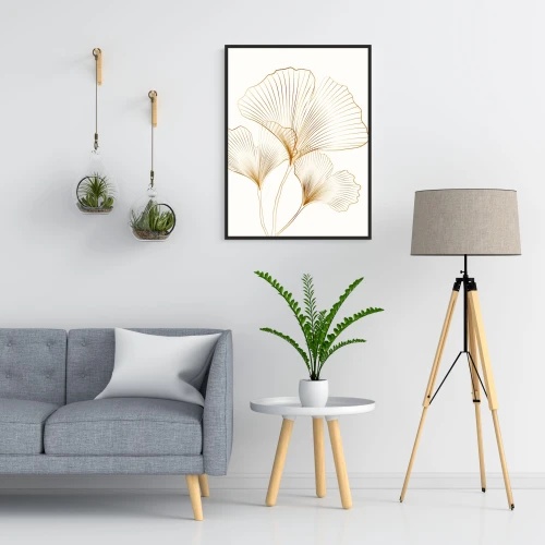 shumee Plakati Slike z zlatom Črn okvir za steno v dnevni sobi Listi 50x70