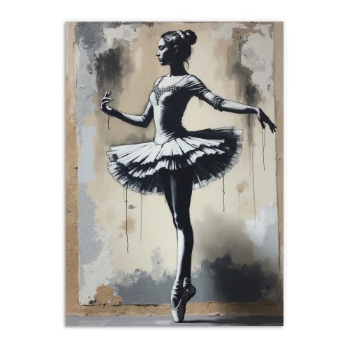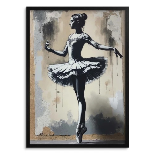 Slike, grafike, slog Banksyja, plakati za dnevno sobo, ulična umetnost podstrešja, baletni plesalec.