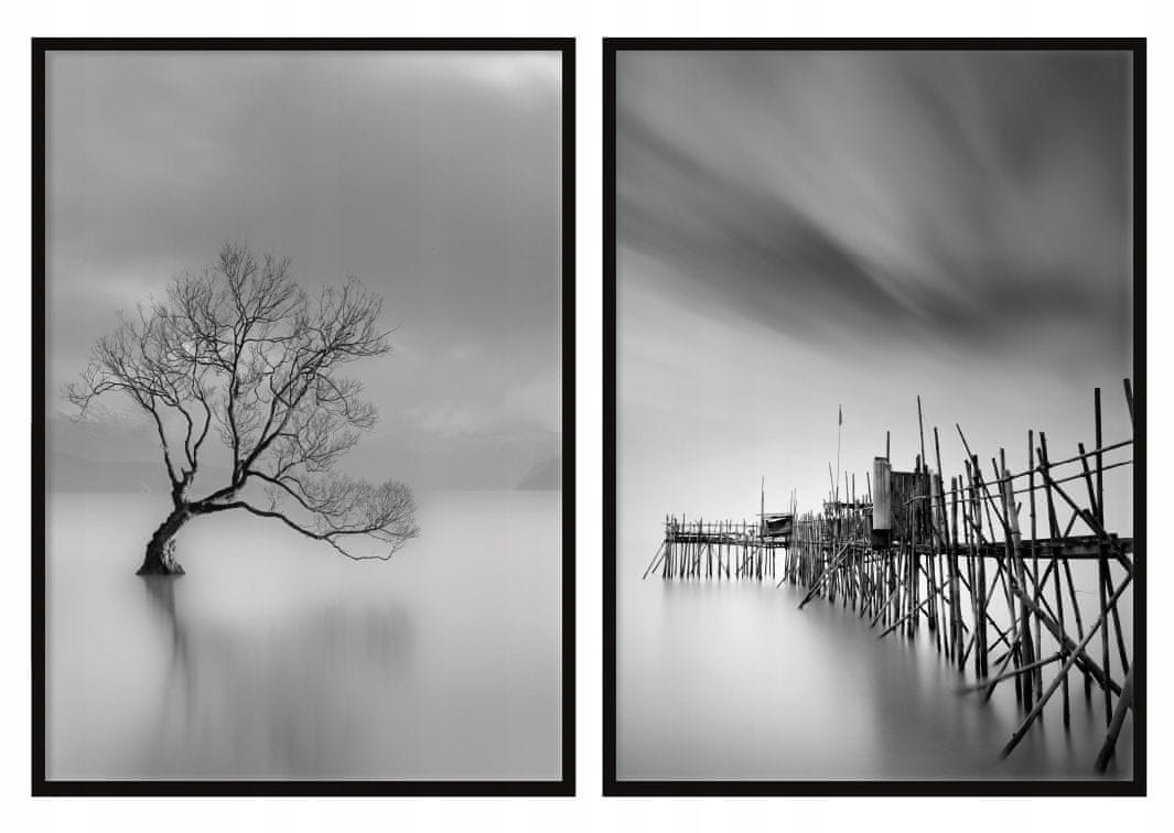 shumee SLIKOVNI PLAKATI V OKVIRJU 33x43cm Diptih Komplet 2 slik Drevo siva P731