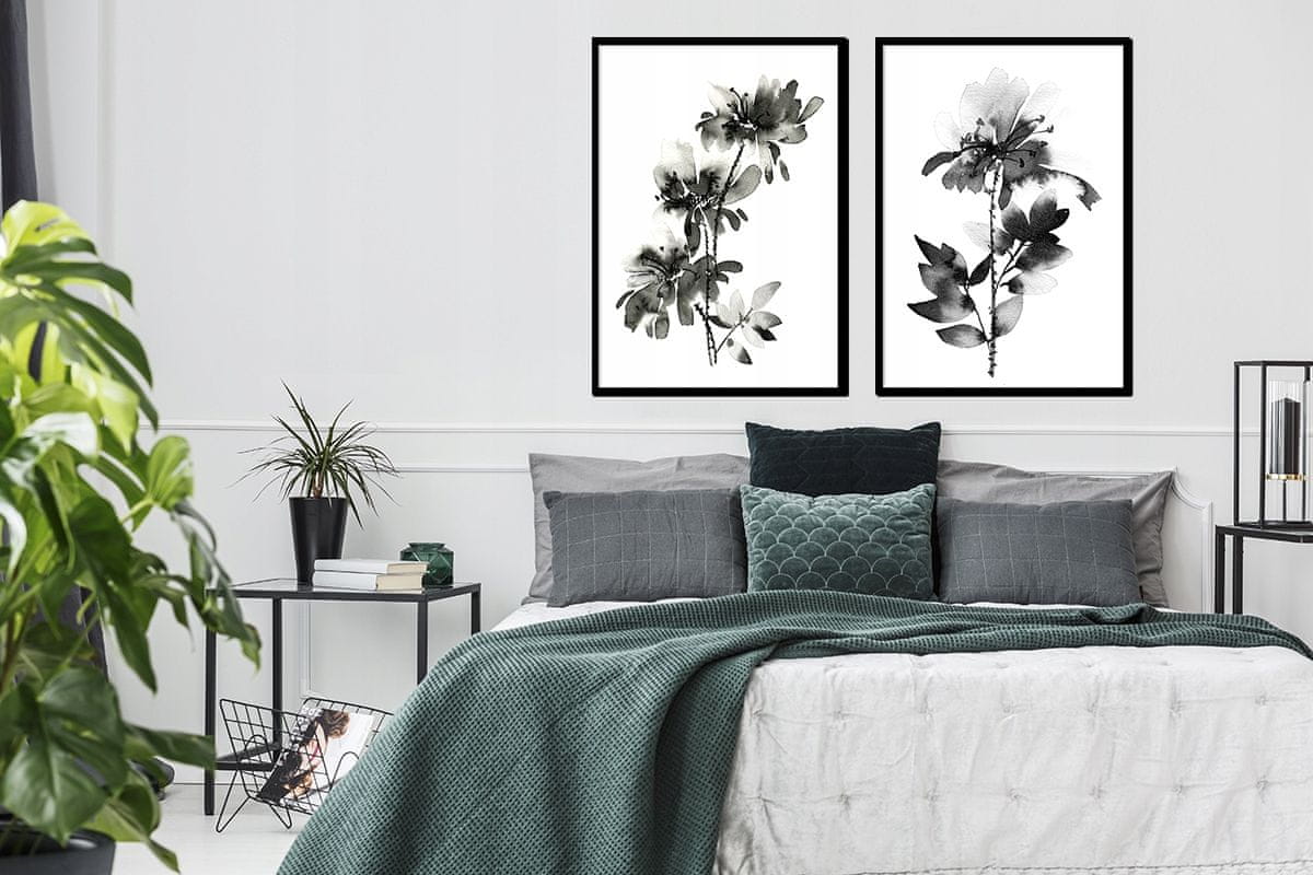 shumee SLIKOVNI PLAKATI V OKVIRJU 53x73cm Diptih Komplet 2 slik Rože Črne P1715