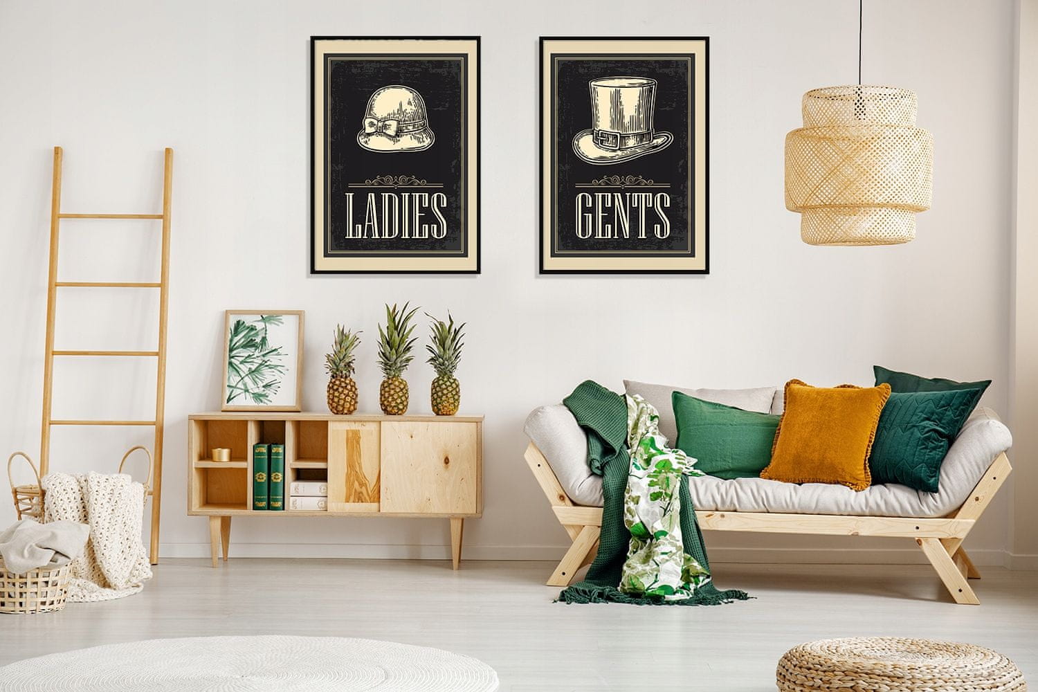 shumee SLIKOVNI PLAKATI V OKVIRJU 53x73cm Diptih Komplet 2 slik Retro klobuki P850