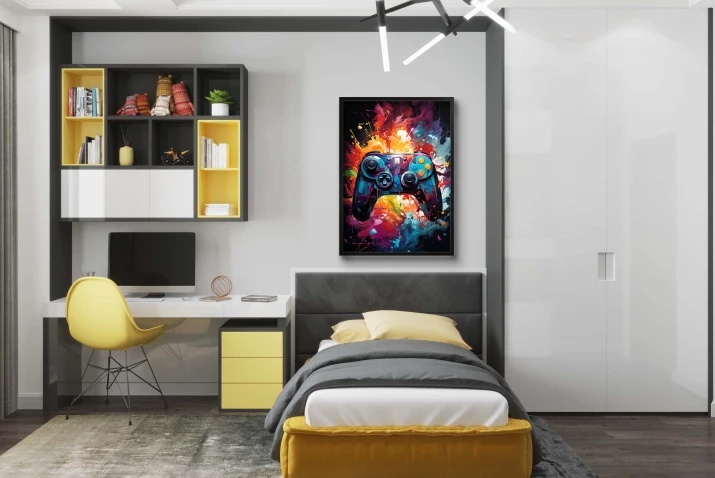 Moderno uokvirjen plakat. Igralna slika: konzola X-Box Pad.