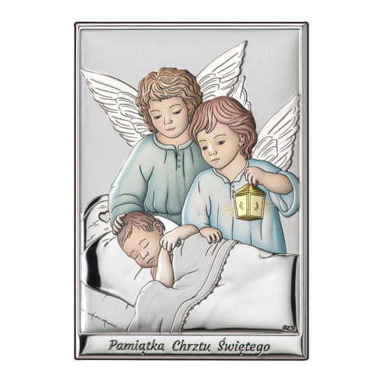 Ekskluzivna srebrna slika z dodatnimi barvnimi fragmenti, od,italijanski proizvajalec srebrnih spominkov. Pravokotna slika prikazujedve lepiaangeli z lučko. Na dnu slike je napis„Spominek na sveti krst.“    Ta slika je unikatno darilo ali spominek ob posebni priložnosti svetega krsta.