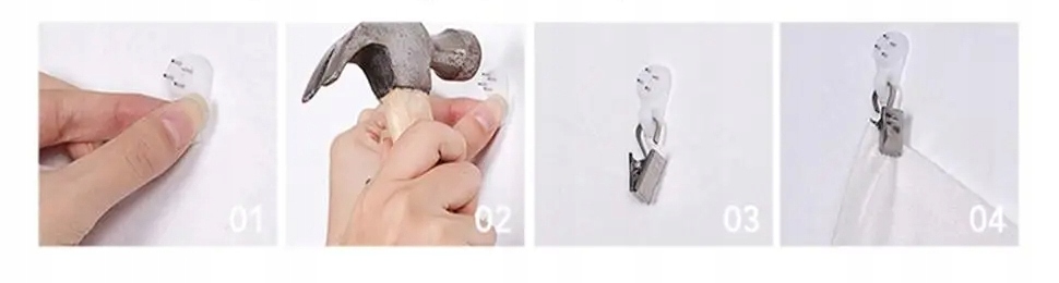 4. Tapiserijo obesite na žebljičke s pomočjo sponk.