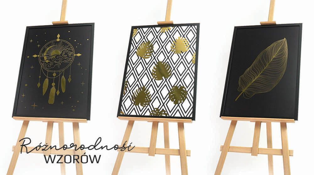 Zlati kovinski plakati: Plakat s pristnim, sijočim zlatim učinkom. Naša posebna tehnologija tiskanja, razvita za doseganje pristnega kovinskega zlatega učinka, nam omogoča, da predstavimo naš novi vrhunski izdelek: zlate plakate! Ti edinstveni, ekskluzivni plakati bodo vsaki notranjosti dodali eleganco in prefinjenost. Prav tako se bodo odlično dopolnjevali z drugimi zlatimi poudarki v vašem domu in ustvarili vzdušje miru in sreče – najpomembnejših stvari v vašem domu. Naši kovinski plakati so izdelani iz najkakovostnejših materialov: pozlata, trdni okvirji, debele in trdne hrbtne strani ter močan obešalnik jih naredijo za izdelek, zasnovan za dolgoletno uporabo. Raznolikost modnih dizajnov plakatov vam omogoča, da izberete dizajne, ki ustrezajo vsakemu notranjemu slogu: cvetličnemu, geometrijskemu, glamuroznemu ali skandinavskemu. Imamo nekaj za vsakogar! Ponujamo plakat + lesen okvir iz MDF. Dimenzije plakata: 70×50 cm, dimenzije slike vključno z okvirjem: 73×53 cm. Specifikacije: neposreden UV-sušen tisk, okolju prijazen. Evropska črnila, brez hlapnih škodljivih snovi, so značilna po visoki odpornosti na odrgnine (lahko jih obrišete z vlažno krpo) in svetlobo (sčasoma ne zbledijo!). Barve so svetle in nasičene, s fotografsko kakovostjo, površina za tisk pa ima satenasto teksturo. Plakata ni treba zaščititi s steklom ali pleksi steklom, kar učinkovito odpravlja težavo odsevov in bleščanja. Z izločitvijo tega elementa iz proizvodnega procesa – zlahka lomljivega, razpokanega in nagnjenega k praskam – zmanjšamo možnost poškodbe slike, na primer med transportom ali padcem. Plakati so uokvirjeni v črne okvirje. Barvo okvirja je mogoče spremeniti v belo. Če želite to narediti, pošljite sporočilo prodajalcu takoj po nakupu. Zamujeno obvestilo o spremembi barve okvirja lahko povzroči, da sprememba ne bo obdelana. Kakovost in izkušnje: Na podlagi naših dolgoletnih izkušenj s storitvami za podjetja in individualne stranke vemo, da sta kakovost izdelkov in hitrost storitve za naše stranke najpomembnejši – in to vam zagotavljamo. Razumemo tudi, da paketi v rokah kurirjev niso vedno pravilno obravnavani, zato posebno pozornost posvečamo zanesljivemu pakiranju blaga. Naša ekipa med proizvodnjo in pripravo vašega naročenega izdelka posveča pozornost vsaki podrobnosti na vsaki stopnji. Naš izdelek je v celoti izdelan na Poljskem. Vsi plakati so izdelani takoj po oddaji naročila na našem sedežu in natisnjeni z lastnimi stroji. Zasnove plakatov ustvarjamo v našem grafičnem studiu, kar nam omogoča, da vam ponudimo najmodnejše dizajne, ki so v skladu s trenutnimi trendi notranje opreme. Naš katalog plakatov se nenehno posodablja z novimi dizajni. Opomba: Prosimo, da vsebino pošiljke pregledate takoj po dostavi, v prisotnosti kurirja. V nasprotnem primeru morebitne pritožbe ne bodo sprejete. Vabimo vas tudi, da obiščete naše druge dražbe! – Oglejte si ocene naših strank in se prepričajte o naši zanesljivosti.