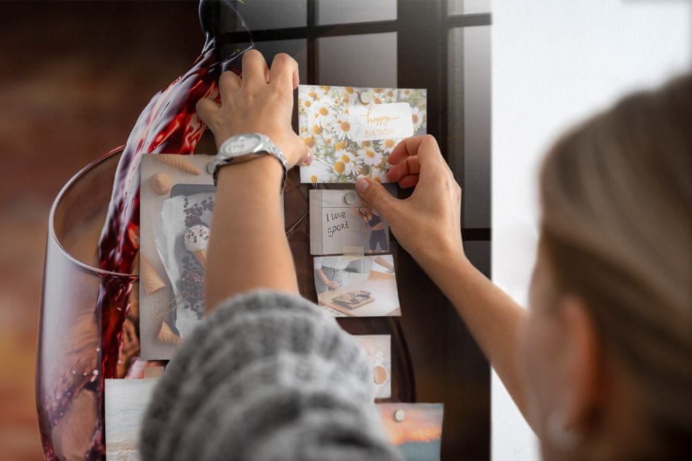 Predstavljamo vam edinstveno in stilsko dovršeno stekleno magnetno tablo, ki je več kot le tabla za zid. Magnetna tabla s tiskom Kozarec vina je popolna kombinacija modernega dizajna in uporabnosti, ki se brezhibno vključi v vsak prostor vašega doma ali pisarne. Visokokakovostni digitalni tisk Kozarec vina na stekleni površini ustvarjata edinstven vizualni učinek, ki ne samo okrasi vaš prostor, ampak ga tudi oživi. Ta stenska magnetna tabla je idealna za vse, ki iščejo eleganten način za prikazovanje vsega, od umetniških del do dnevnih opomnikov. Ne samo, da je ta steklena magnetna tabla za magnete vizualno privlačna, ampak je tudi izjemno funkcionalna. Z njo lahko enostavno organizirate svoje življenje, saj omogoča pripenjanje vsega, od receptov do otroških risbic. V kompletu priloženih 5 estetskih magnetov dodatno poudari njeno vsestranskost in uporabnost. Magnetna tabla s tiskom Kozarec vina je več kot le okras, je orodje, ki vam pomaga ohranjati red in hkrati izražati svoj osebni stil. Vključite jo v svoj dom ali delovni prostor in dovolite, da ta izjemen kos ne samo organizira, ampak tudi estetsko obogati vaše okolje. Tabla namenjena neodimskim magnetom (srebrna).
