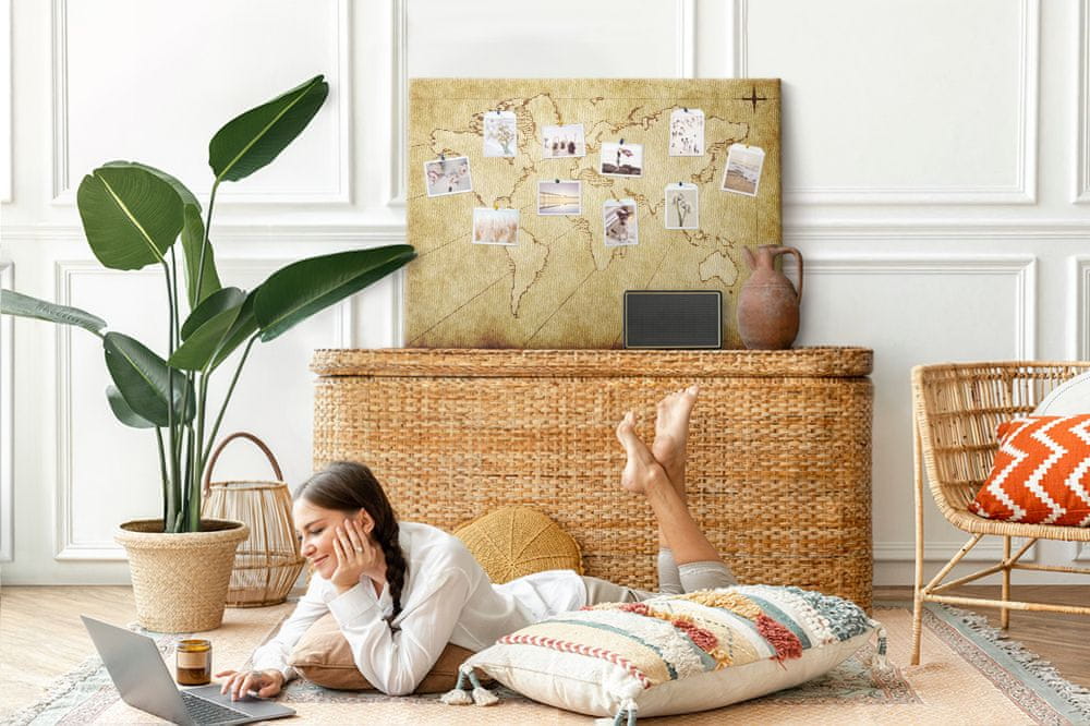 Oživite svoj prostor z našo Plošča iz plute Stari zemljevid sveta Celoten opis