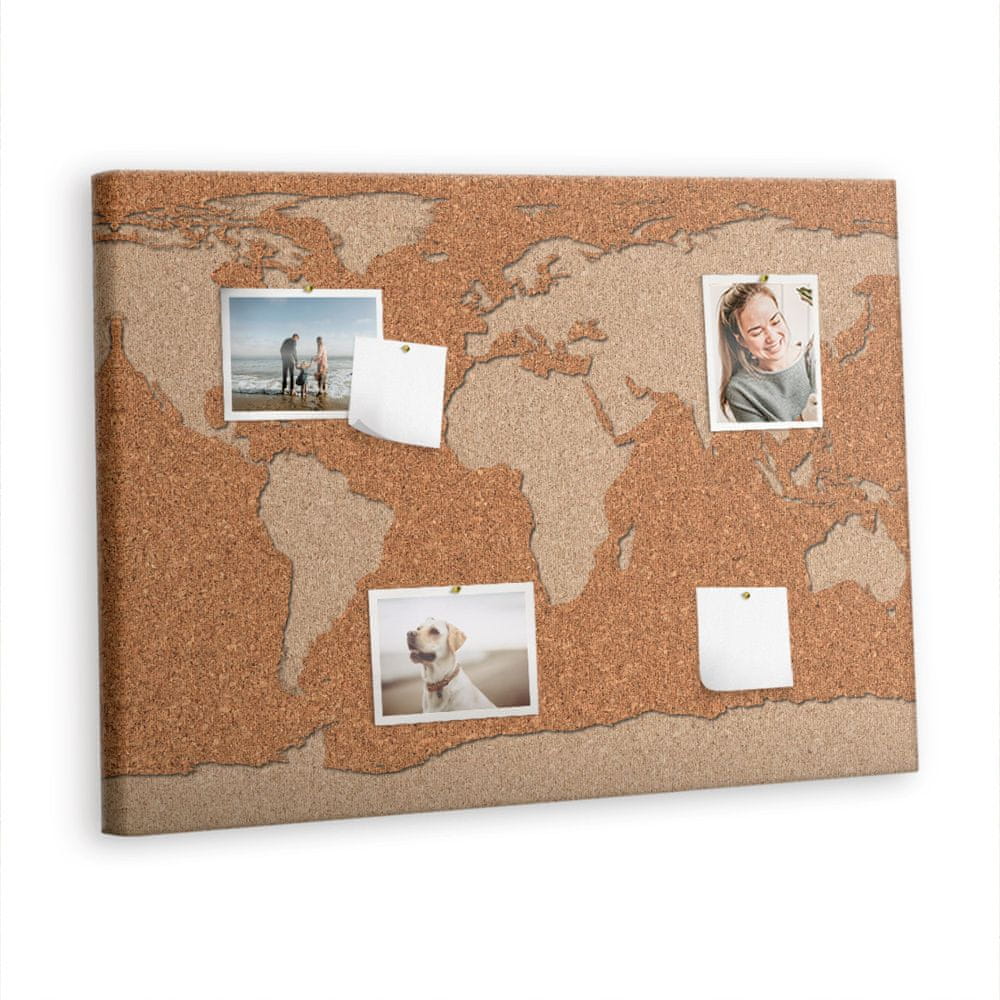 tulup.si Plošča iz plute Svetovni zemljevid les 100x70 cm Kovinski zatiči
