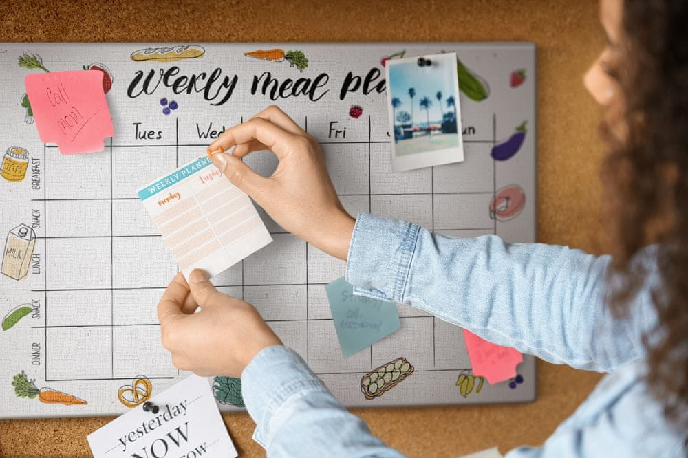 tulup.si Plošča iz plute Tedenski meni 60x40 cm Barvne zatiči