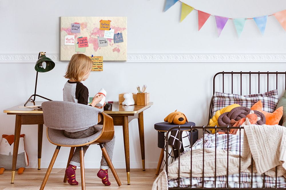 tulup.si Plutovinasta tabla Zemljevid svetovnega akvarela 60x40 cm Barvne zatiči