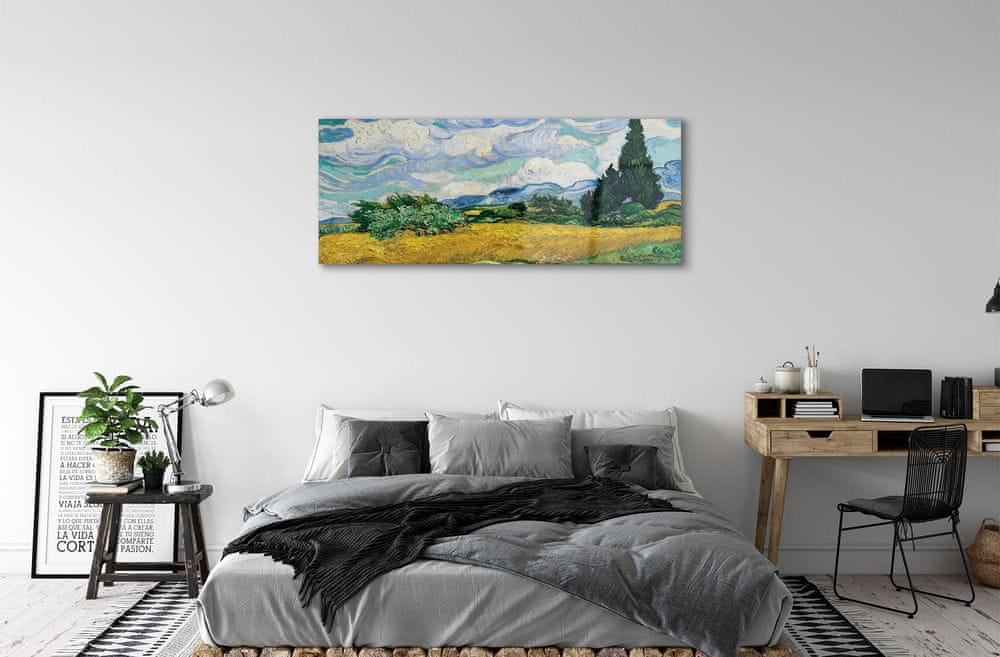tulup.si Slika na akrilnem steklu Art travnik ciprese 140x70 cm 4 obešalnika