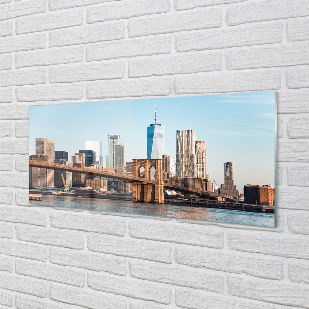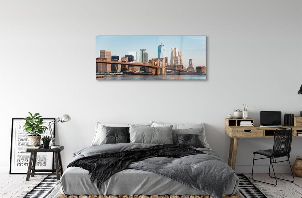 tulup.si Steklena slika Panorama most reke 140x70 cm 2 obešalnika