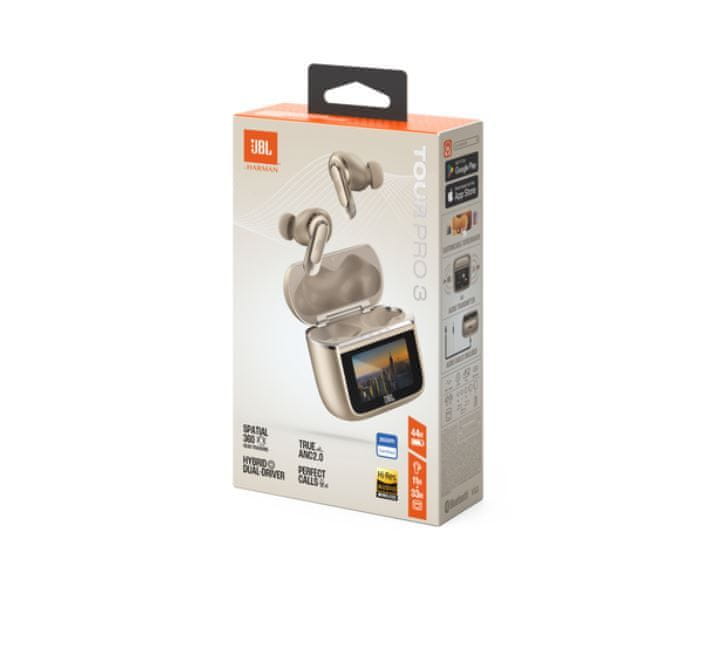 Pametno ohišje za polnjenje slušalk JBL Tour Pro 3 TWS je opremljeno z zaslonom na dotik, ki omogoča popoln nadzor in prilagajanje nastavitev slušalk v več jezikih, neposredno na polnilnem ohišju.