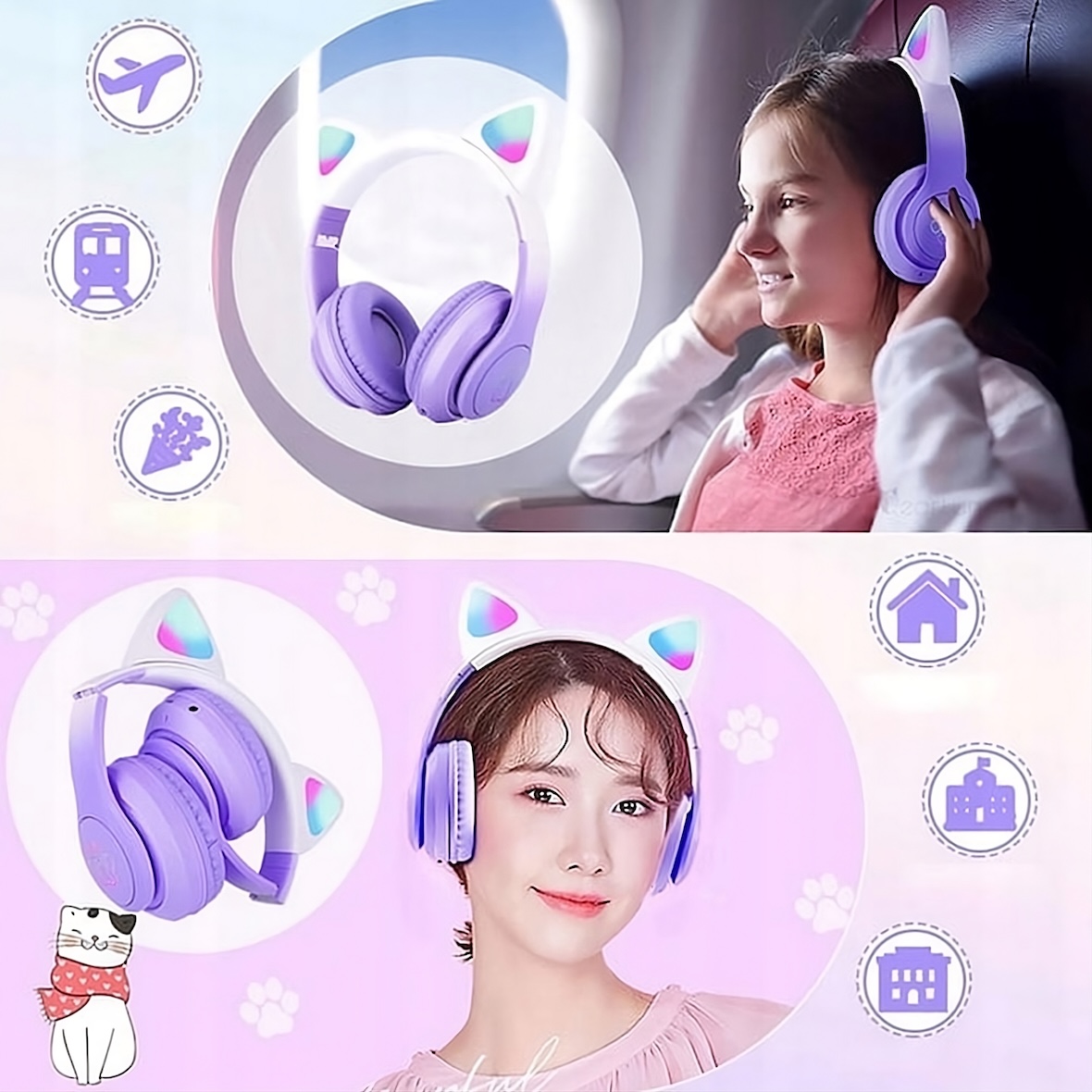 Bluetooth slušalke združujejo igriv dizajn z visoko funkcionalnostjo, da otrokom in najstnikom ponudijo popolno izkušnjo poslušanja glasbe. Zahvaljujoč svetlim mačjim ušesom z barvito LED osvetlitvijo in številnimi praktičnimi funkcijami so idealen spremljevalec za vsak dan.
