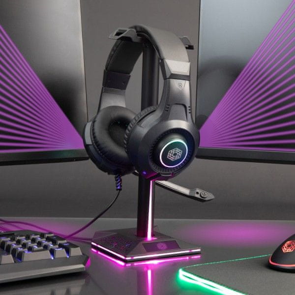RGB LED osvetlitev ozadja dodaja estetski pridih, ustvarjajoč privlačen videz, ki se prilega vaši igralni postaji. S priključkom USB in 3,5 mm ter 2 metrskim kablom je povezava preprosta in primerna za računalnike, MAC in igralne konzole.